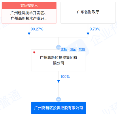 作為廣東省廣州廣州開發(fā)區(qū)的國家級經(jīng)開區(qū)平臺,高新控股公司主體評級為AA+,萬得分類為非城投,股東為廣州高新區(qū)投資集團(tuán)有限公司(以下簡稱“高新區(qū)集團(tuán)”),高新區(qū)集團(tuán)為本次債券發(fā)行提供了擔(dān)保支持,而非采用商業(yè)擔(dān)保機(jī)構(gòu)。股權(quán)關(guān)系如下: