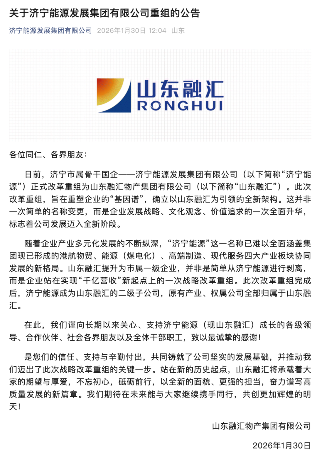 來源:濟寧能源發(fā)展集團官網(wǎng)、齊魯壹點。若文中內(nèi)容涉及版權(quán)問題或需引用授權(quán),歡迎隨時通過公眾號后臺留言與我們聯(lián)系,我們將第一時間妥善處理。