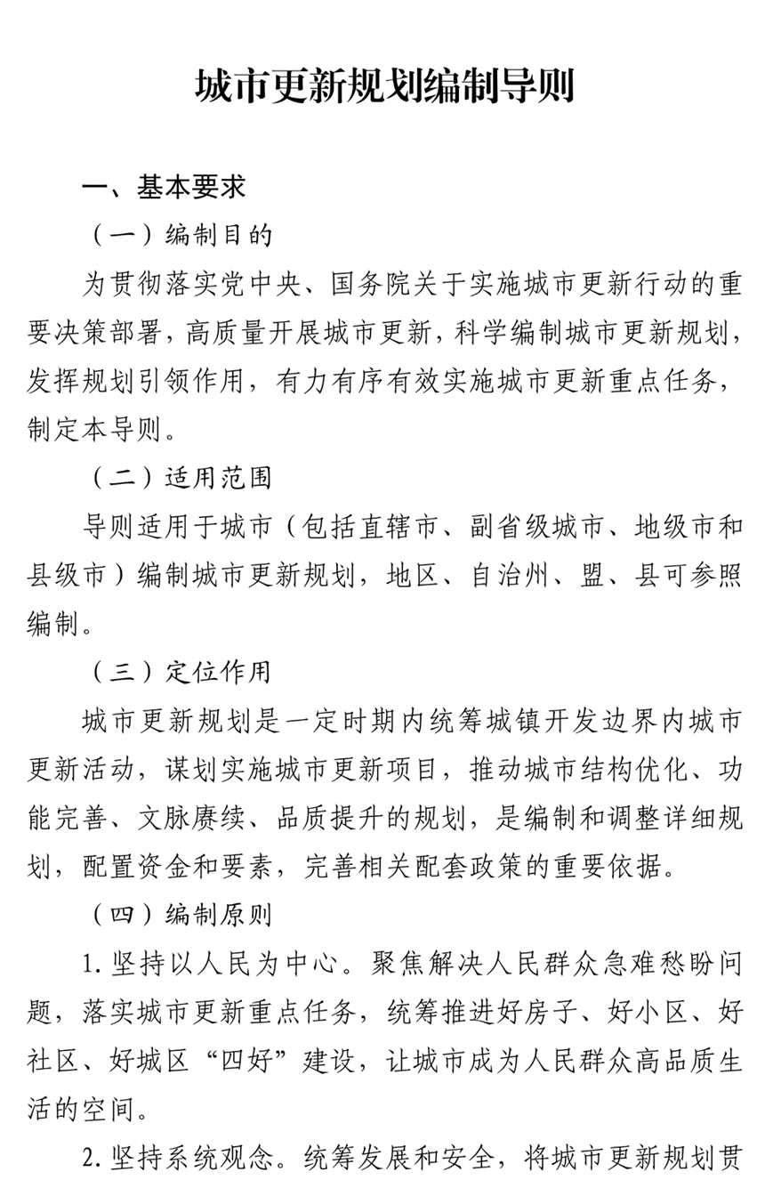 為深入貫徹中央城市工作會議精神,落實《中共中央辦公廳、國務院辦公廳關于持續(xù)推進城市更新行動的意見》,指導各地制定實施城市更新專項規(guī)劃,建立完善“專項規(guī)劃—片區(qū)策劃—項目實施方案”的規(guī)劃實施體系,住房城鄉(xiāng)建設部組織編制了《城市更新規(guī)劃編制導則》,要求結合實際做好城市更新規(guī)劃編制實施工作。